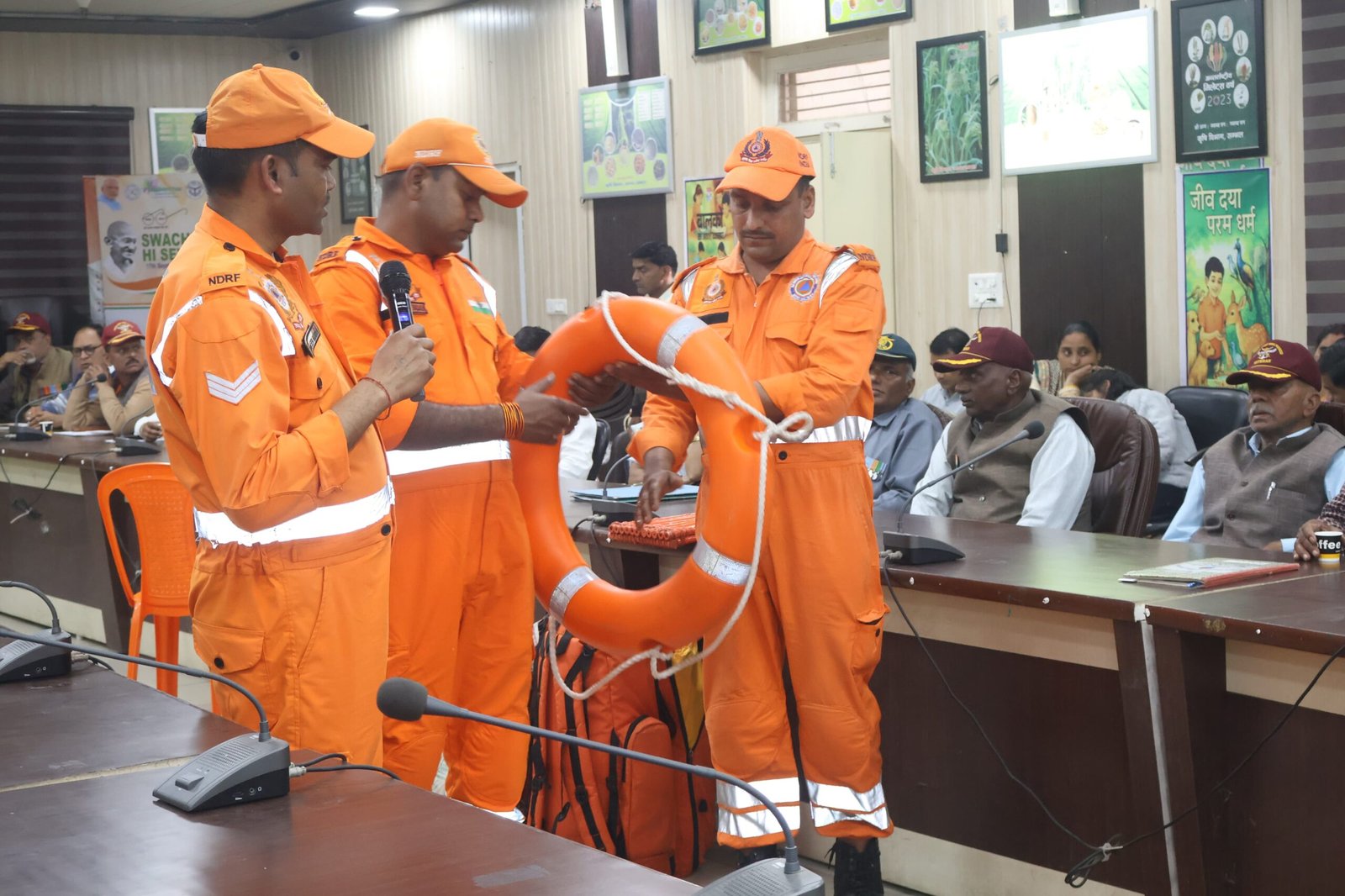 एनडीआरएफ टीम से सहायक उप निरीक्षक सत्यवान शर्मा के नेतृत्व में एनडीआरएफ टीम के द्वारा भूकंप एवं प्राकृतिक आपदा से बचने के लिए रिहर्सल किया।