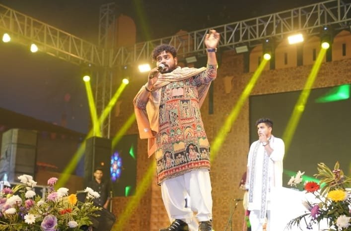 (39वां सूरजकुंड अंतरराष्ट्रीय आत्मनिर्भर क्राफ्ट मेला -2026) (मुख्य चौपाल पर आयोजित सांस्कृतिक संध्या में हेमंत बृजवासी के भजनों पर झूमे...